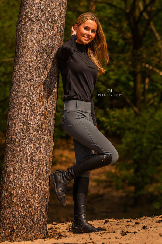 Premium paardrijleggings met geavanceerde siliconen grip voor stabiele ritten en comfortabele naden die irritatie voorkomen. Het strakke moderne ontwerp is geschikt voor shows, trainingen of recreatief rijden. Meerdere zakken voor al je essentials bieden de perfecte combinatie van stijl en comfort voor elke ruiter.